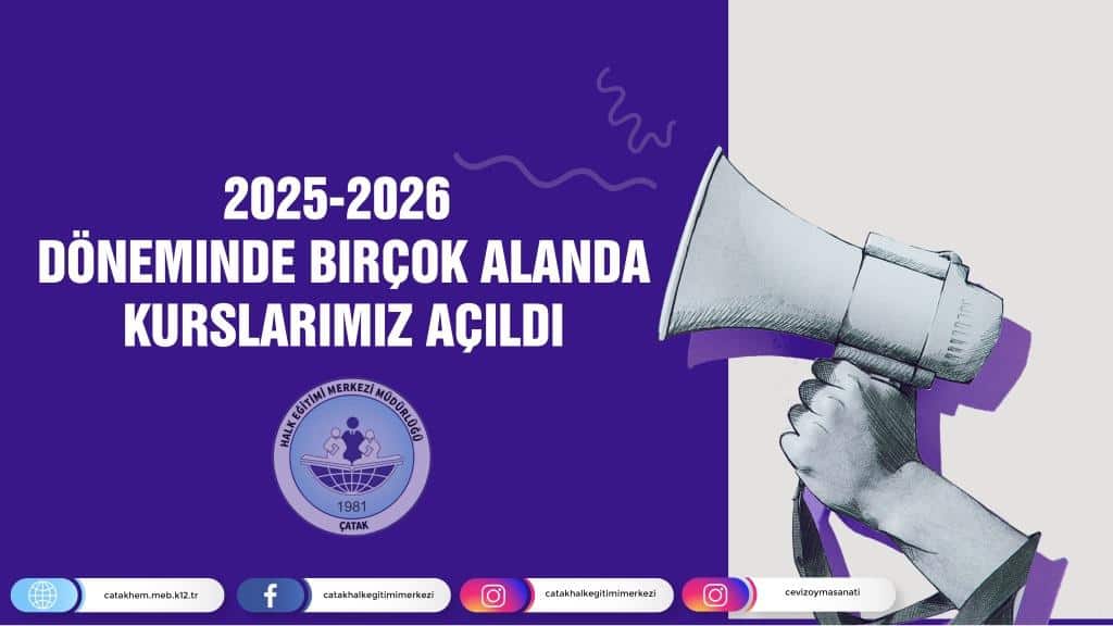 Çatak Halk Eğitimi Merkezi Müdürlüğümüz bünyesinde 2025-2026 eğitim öğretim yılı kapsamında çeşitli alanlarda kurslarımız açılmıştır.